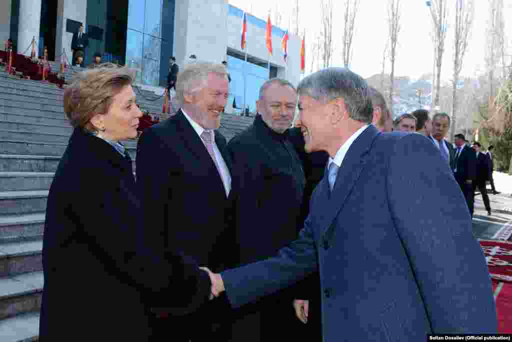Орусия президентин "Манас" эл аралык аэропортунан премьер-министр Сооронбай Жээнбеков тосуп алды.
