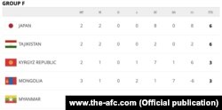 Учурда F тайпасында эки оюнда алты упай топтогон Жапониянын курама командасы жадыбалдын сап башына чыкты. Эки оюнда алты упай топтогон Тажикстандын курама командасы экинчи орунда. Үч упай менен Кыргызстан үчүнчү орунда. Монголия төртүнчү, Мьянма бешинчи орунда турат.