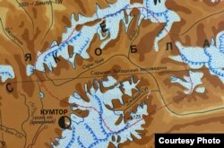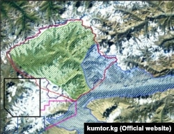 Кумтөр кени менен Сары-Чат - Ээр-Таш коругунун спутниктен тартылган көрүнүшү Photo: GoogleEarth