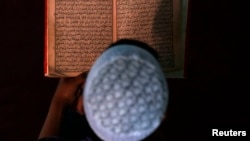 Жалал-Абаддагы мечиттердин биринде китеп окуп отурган жигиттер.