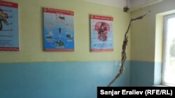 Мектептин эскилиги сыртынан эле билинип турат. Ичкериде болсо кааналардын дубалдары жарылып кеткен. Тешиктерден наркы бөлмөдөгү доска-парталарды санай берсеңиз болот, же дубалдарга илинген көргөзмө куралдарды көрүп, окушуңуз мүмкүн. Дубалына катуурак уруп койсоңуз, шыптын бир бөлүгү көчүп түшөт.